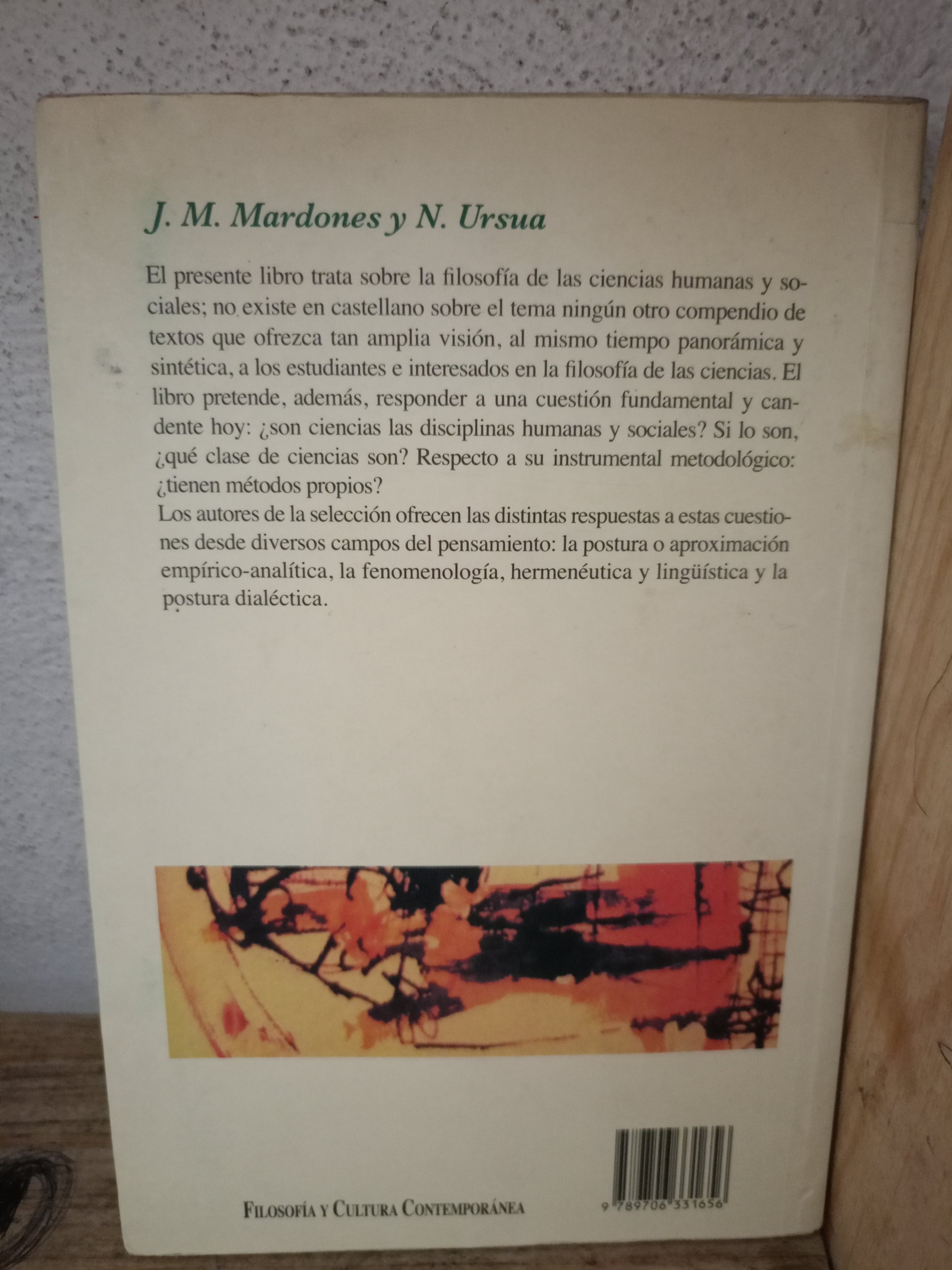 FILOSOFÍA DE LAS CIENCIAS HUMANAS Y SOCIALES POR J.M. MARDONES Y N. URSÚA USADO SOCIOLOGÍA LITERARIO 305