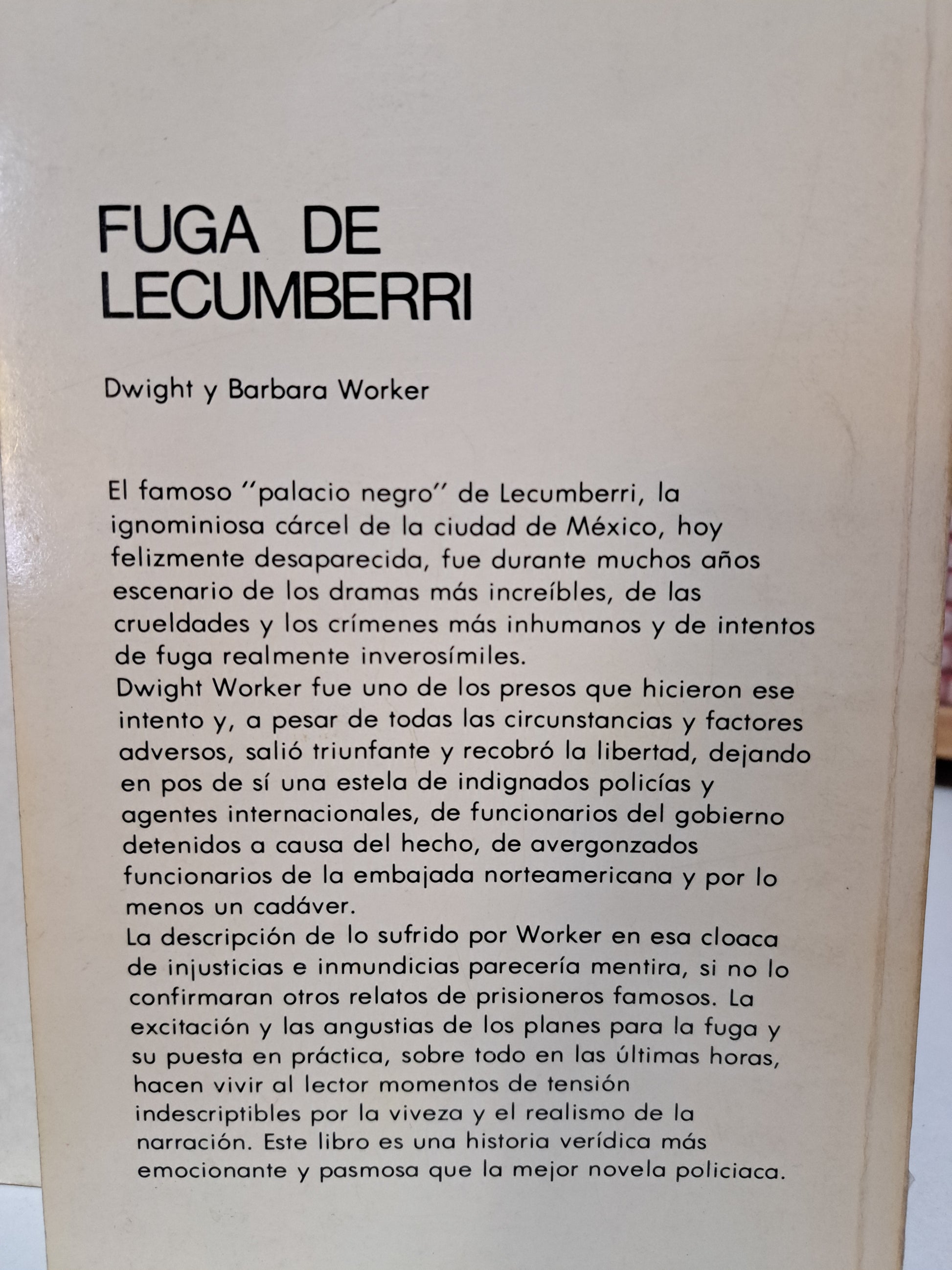 FUGA DE LECUMBERRI DWIGHT Y BARBARA WOKER USADO NOVELA JUÁREZ