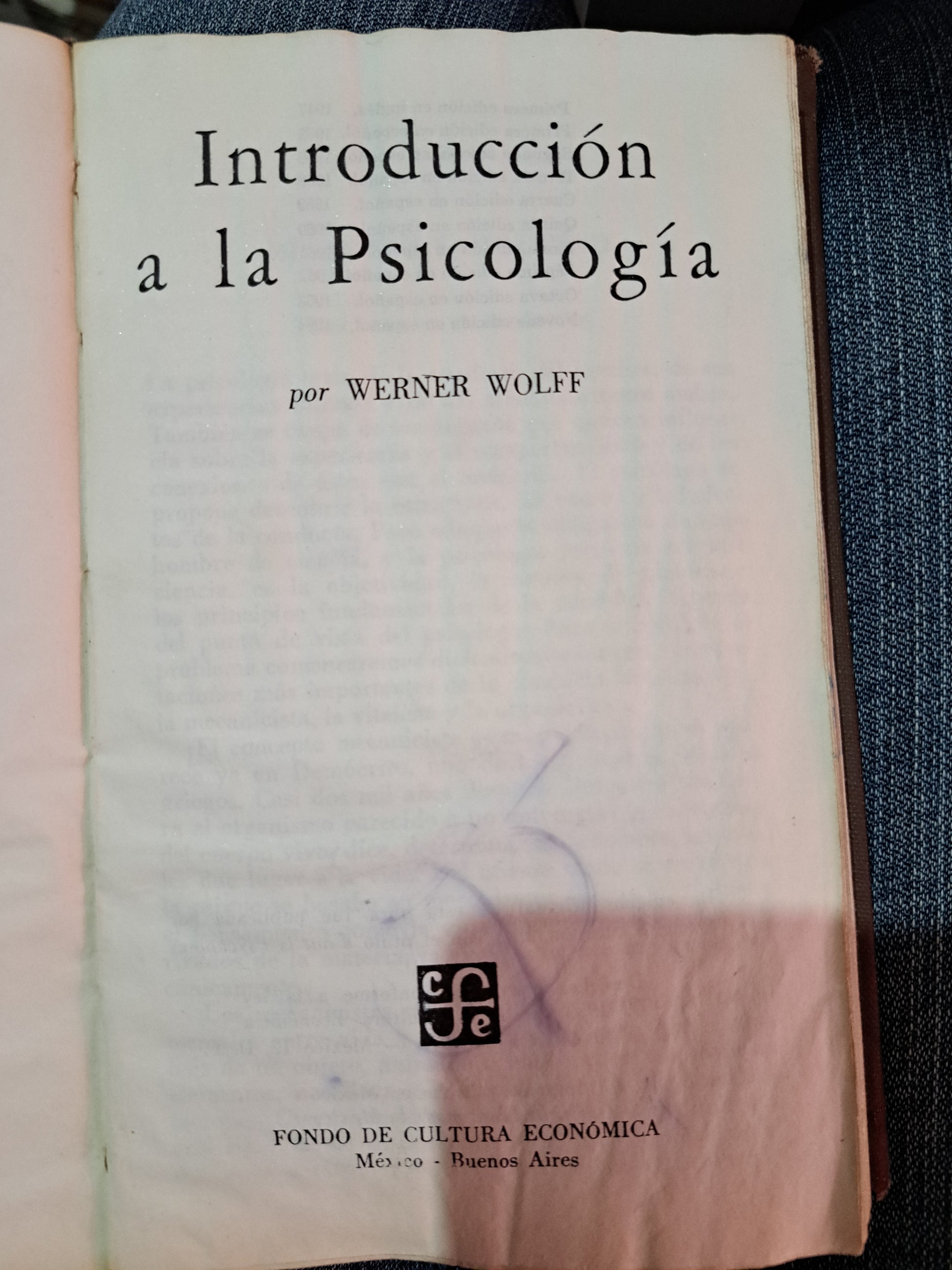 INTRODUCCIÓN A LA PSICOLOGÍA WERNER WOLFF USADO PSICOLOGÍA LITERARIO 305
