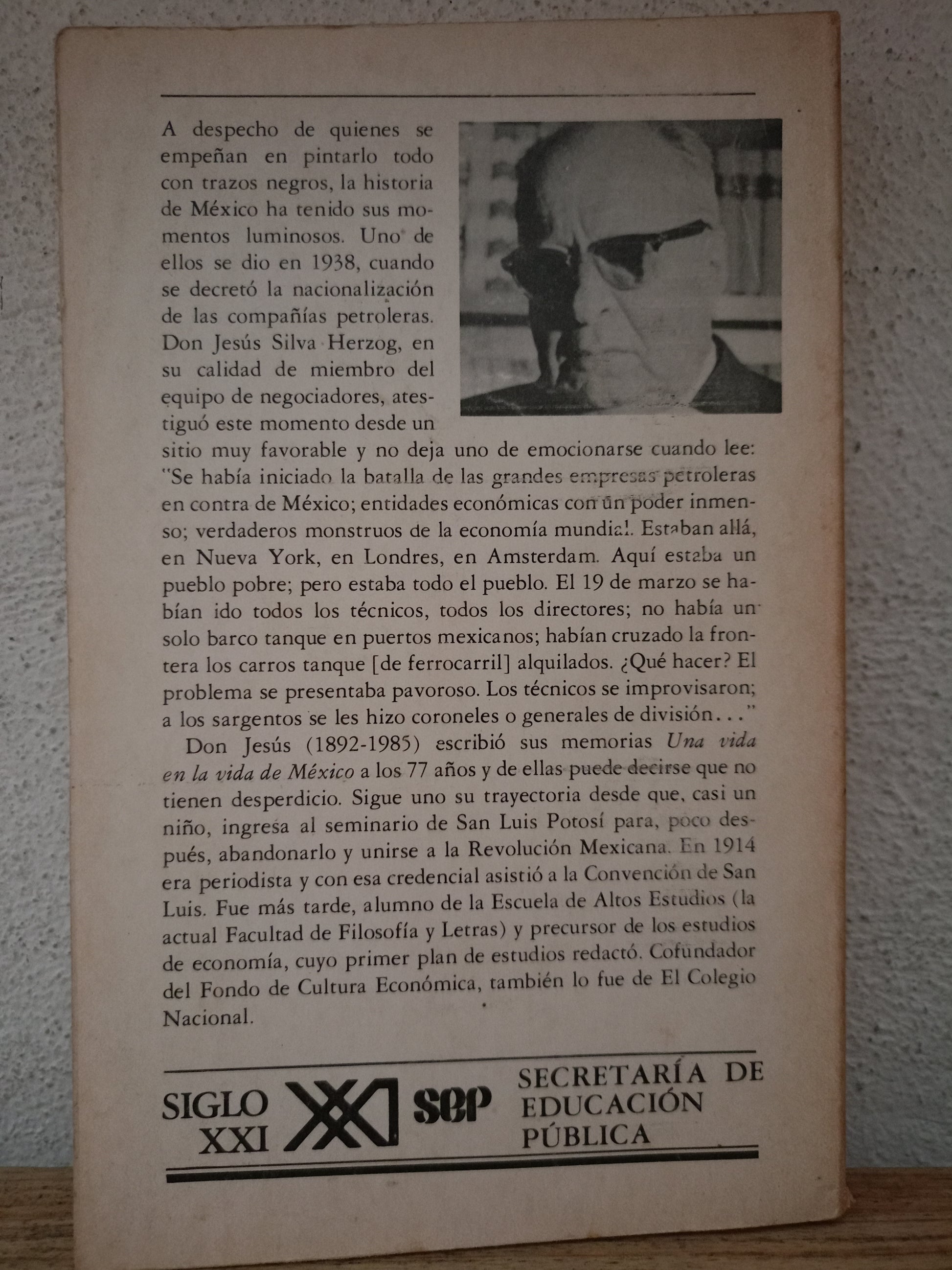 UNA VIDA EN LA VIDA DE MÉXICO POR JESÚS SILVA HERZOG USADO NOVELA LITERARIO 305